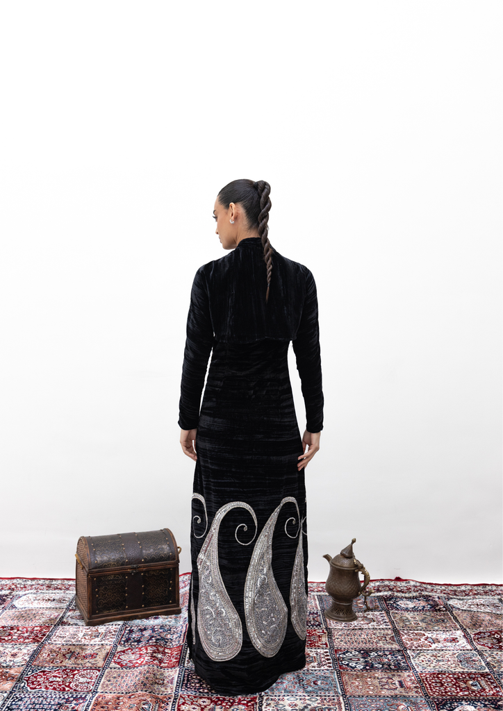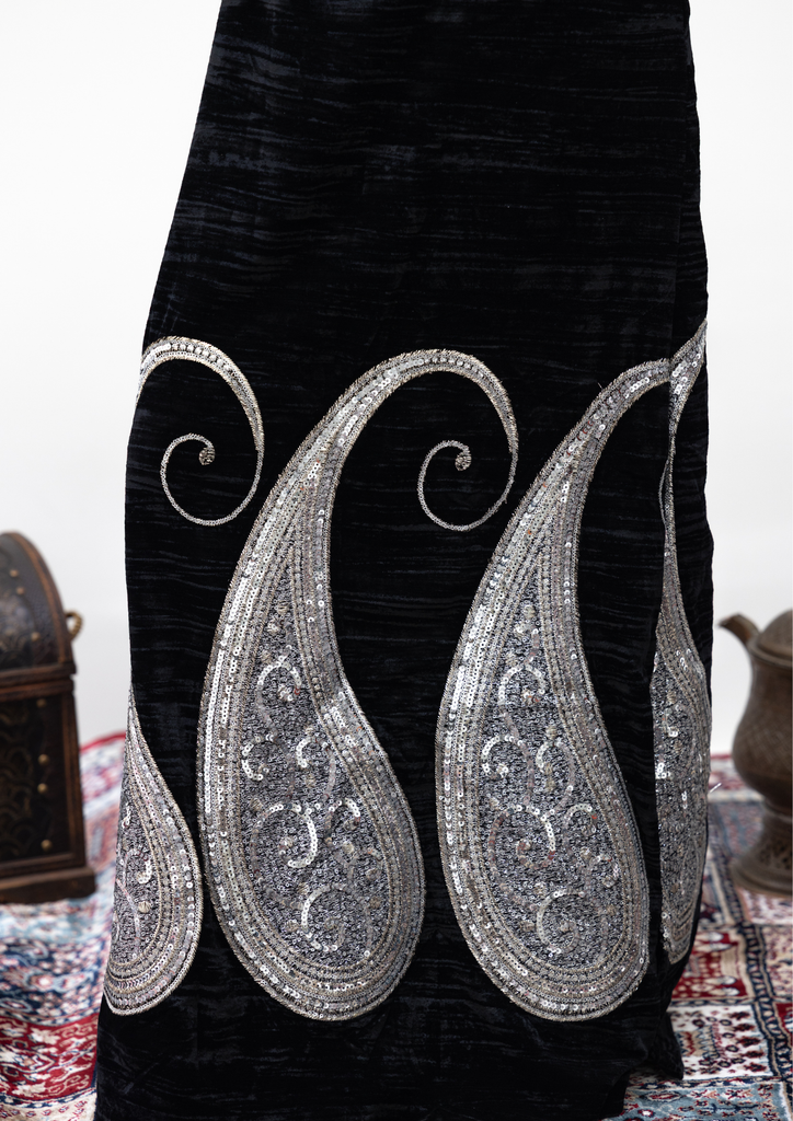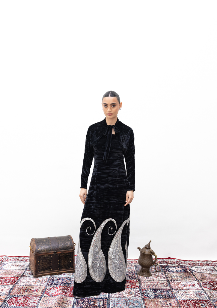 Velvet kaftan with silver embroidery
