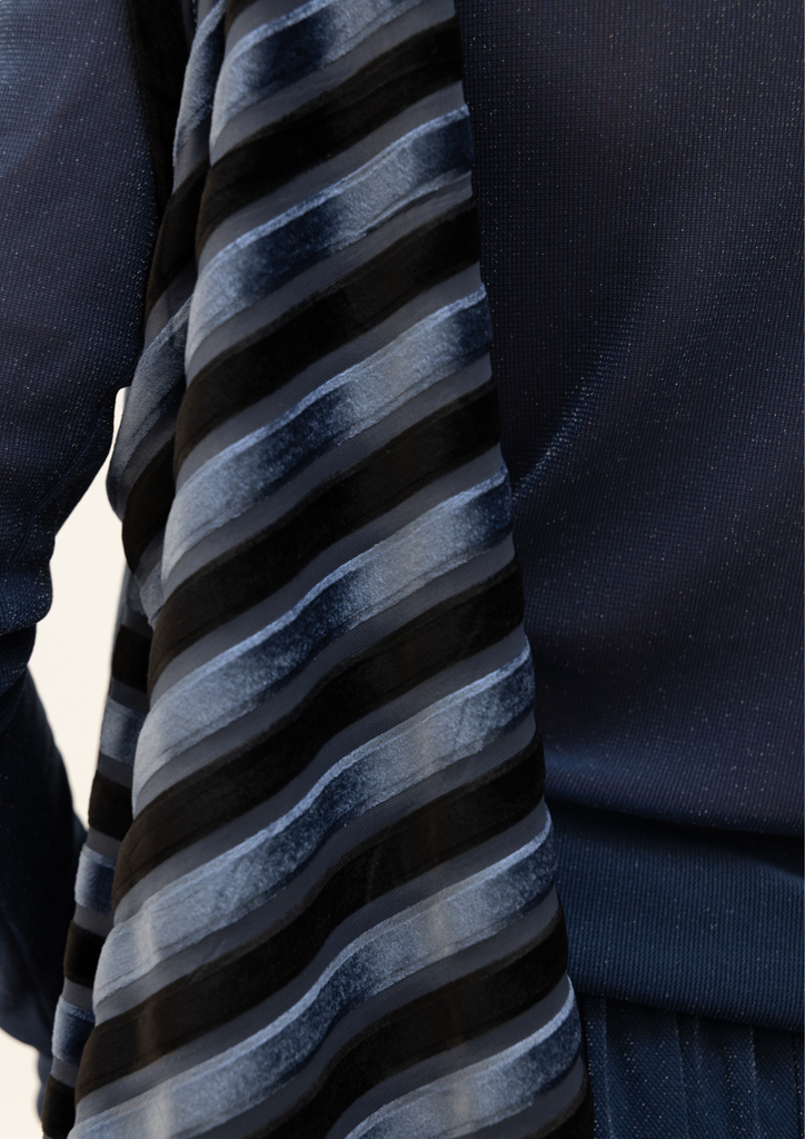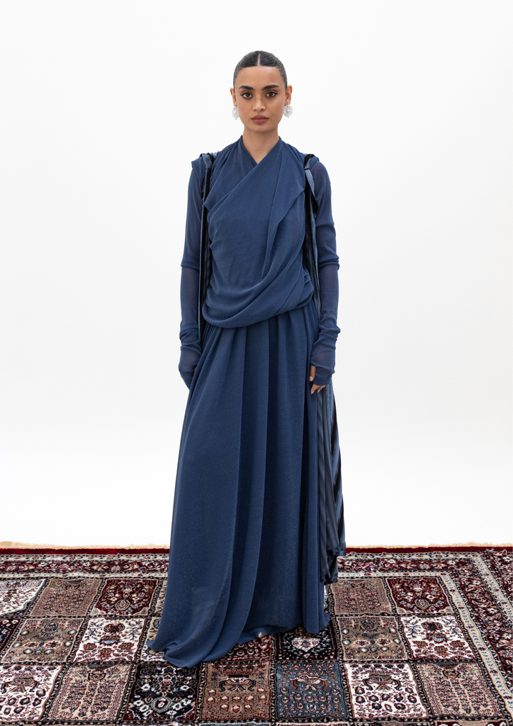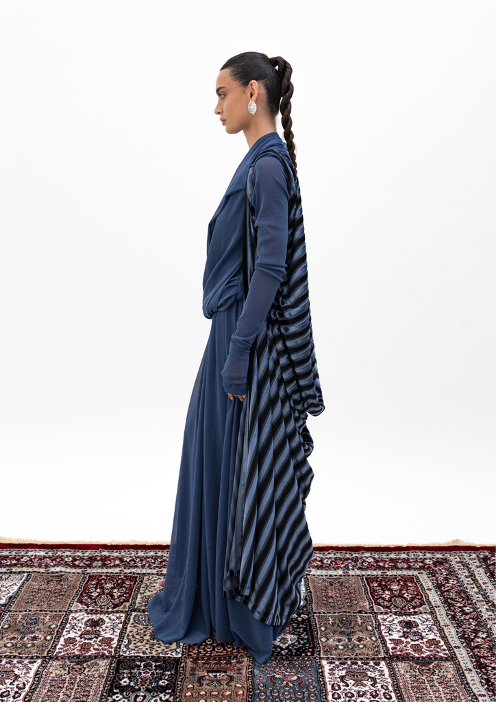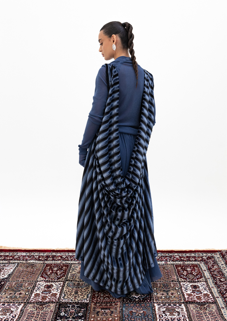 Blue kaftan with striped cape